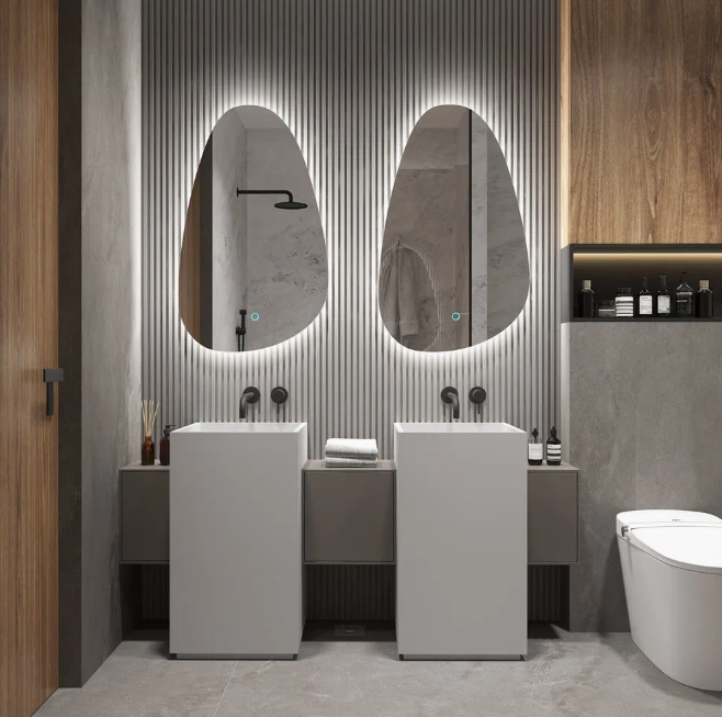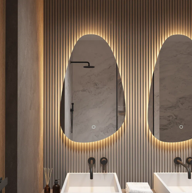 - Miroir LED sans cadre à double éclairage arrière et interrupteur tactile