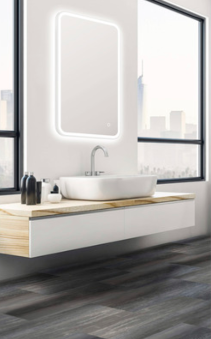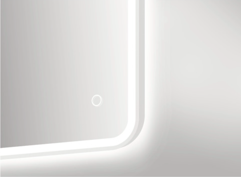 - Miroir LED carré en acrylique transparent sans raccord, coins arrondis et interrupteur tactile