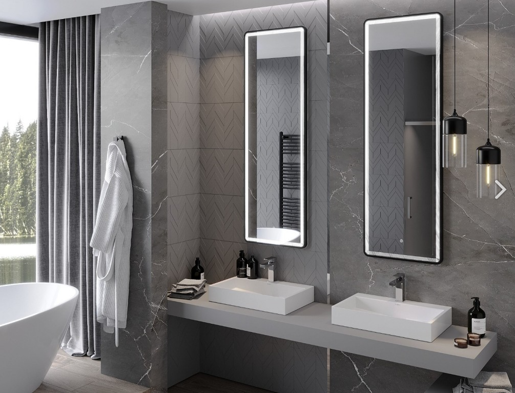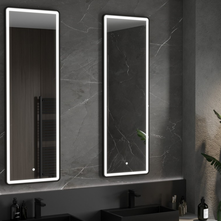 - Miroir LED à cadre acrylique, double lumière, fonction antibuée et interrupteur tactile double