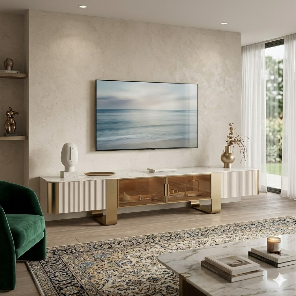 - Meuble en bois massif + cuir sellier + inox + ardoise brillante